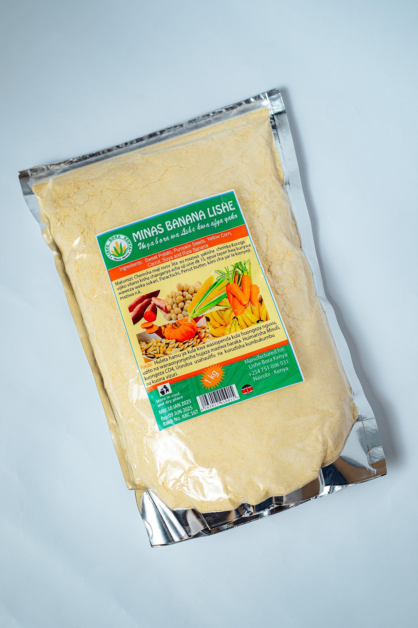 Minas banana flour is a porridge flour suitable for kids who are 9 months and above to boost appetite, immunity, and weight.