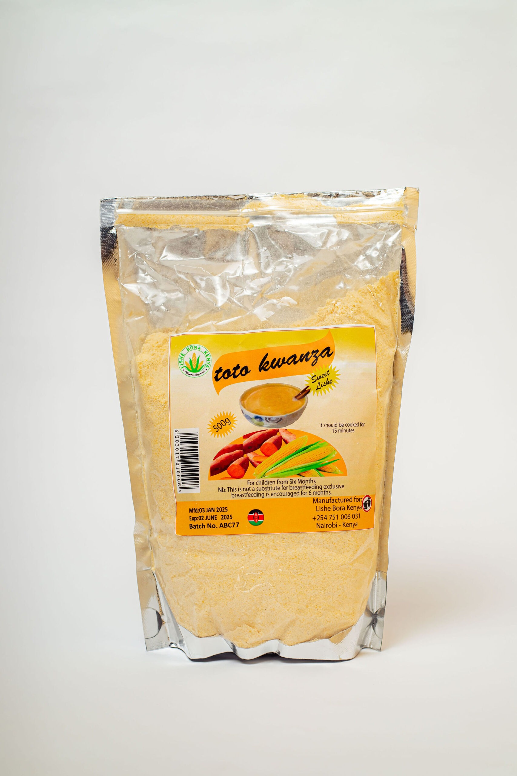 Toto Kwanza Weaning Flour  is used to wean babies from breast milk to solid foods. It’s usually given to babies 5 months and above. The ingredients of the Toto kwanza weaning flour are: